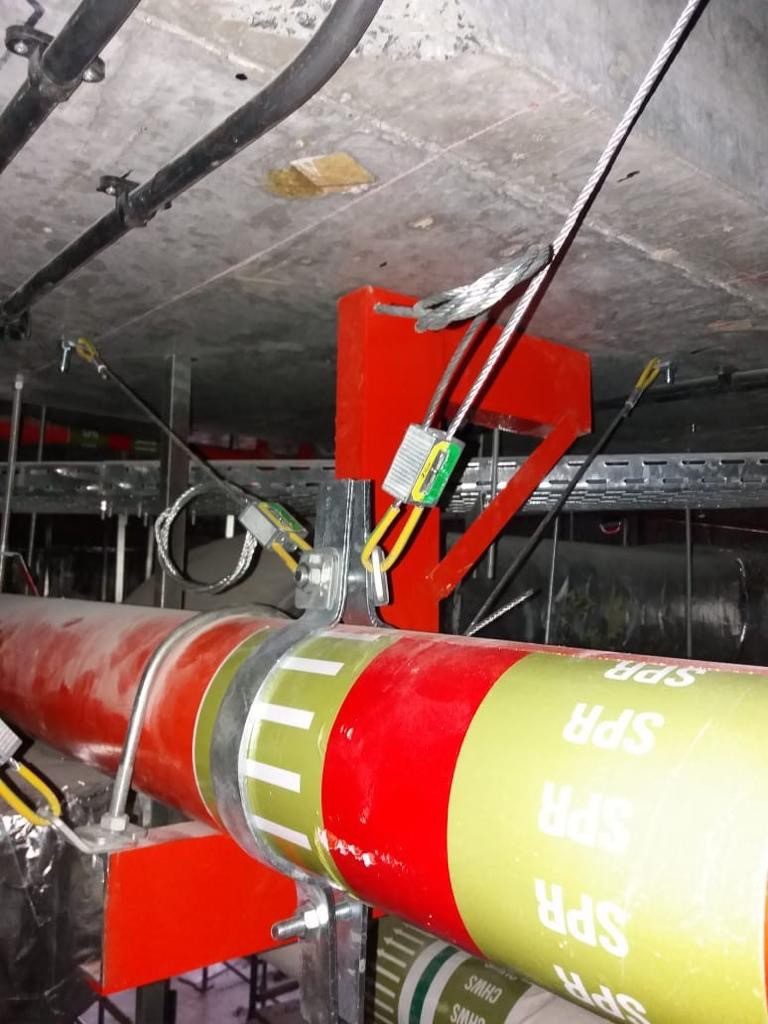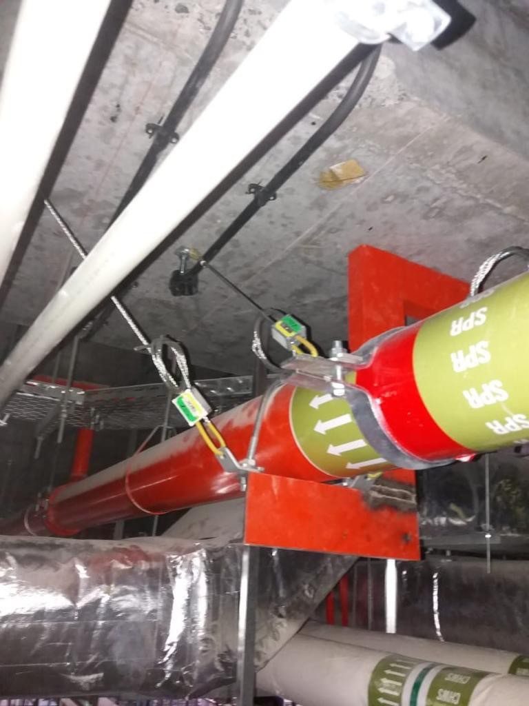 A complete Seismic Engineering Report along with Anchor calculations was also provided for Rigid Seismic Support for the piping as well. The rigid seismic support was installed in locations where seismic wire rope systems could not be installed due to space constraint.