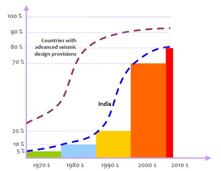 Fig : Evolution trends in costs of NSEs used in buildings over the last four decades: in India and in countries with advanced seismic provisions for design of buildings and NSEs